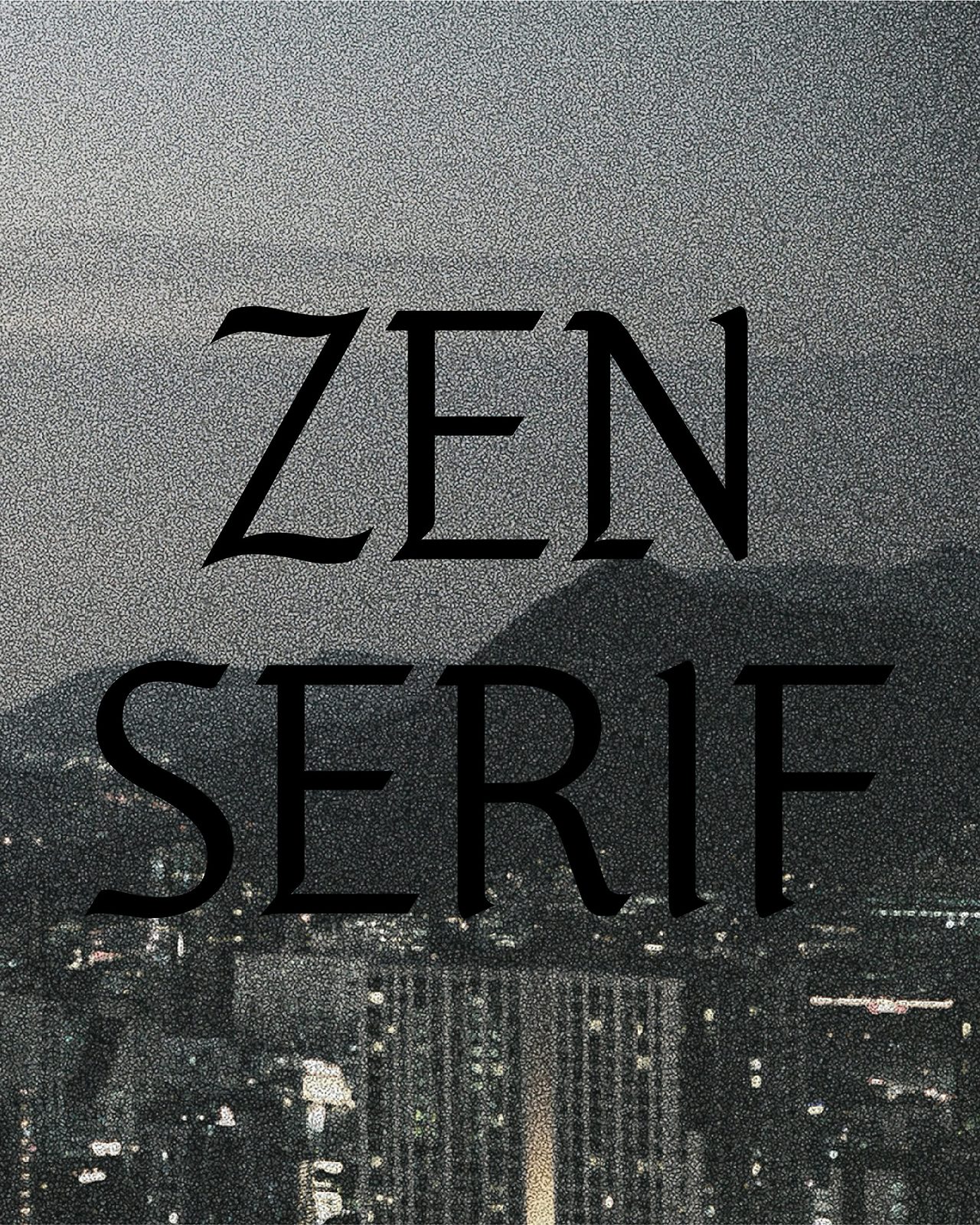 하지만 젠 세리프는 전통적인 블랙레터의 딱딱한 인상을 덜어내고 부드러운 곡선을 더해 현대적으로 재해석했습니다. 전통성과 현대성이 어우러진 이 서체는 강렬하면서도 신선한 인상을 남깁니다.